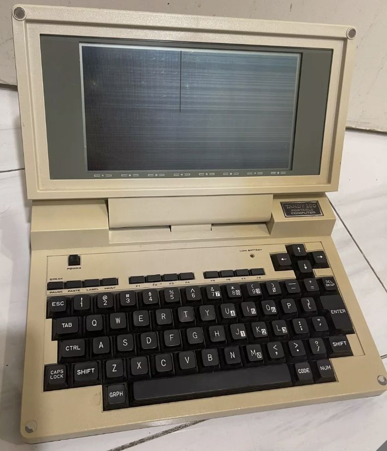 A dead memory battery also will exhibit some strange behaviours when first turning on a Model 200 which may lead you to believe that your computer is very broken. At a charge less than 2.2V, the display will behave erractically, you'll get flashing on the LCD and ticking from the internal buzzer. This is likely due to the reset line being initiated endlessly on the CPU and not allowing the computer to boot. I didn't get a picture of it on my own, but there was a picture in the listing of this behaviour as you can see below.