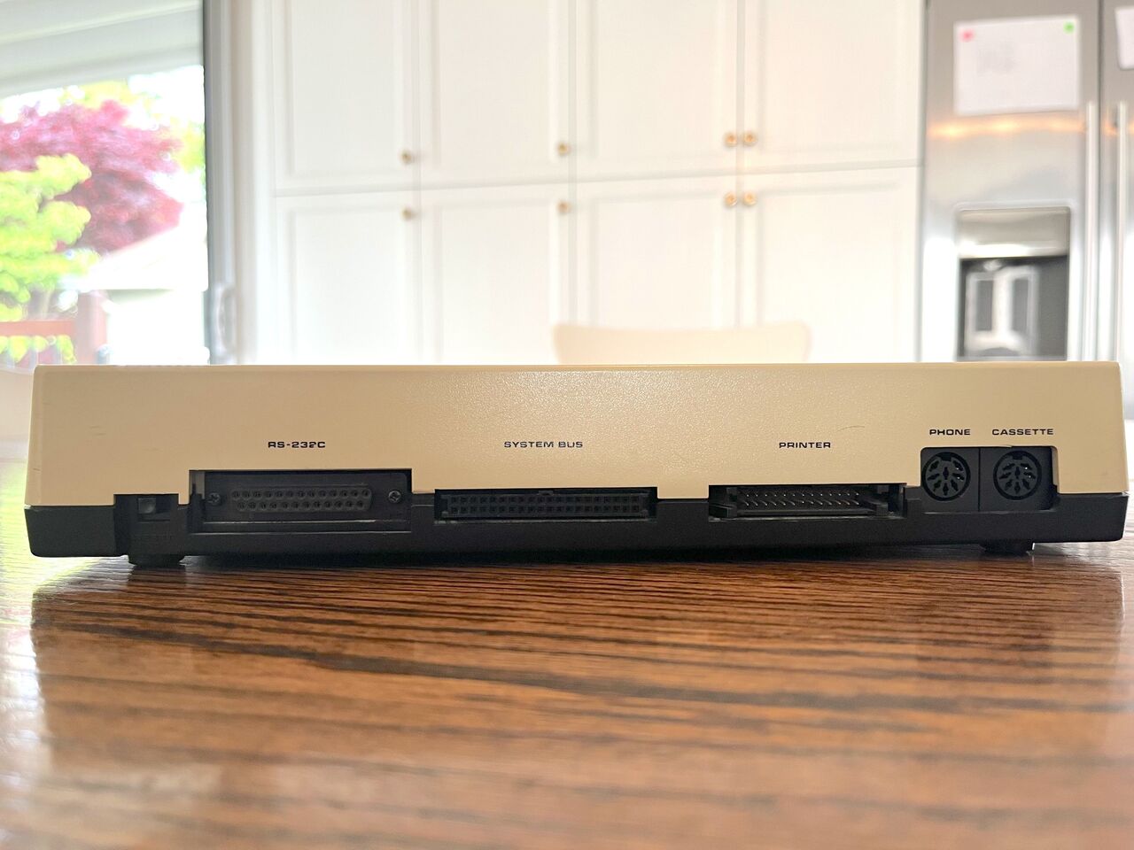 I/O: RS232 serial (19.2Kbps max), Printer, cassette, modem, barcode reader, system bus port.